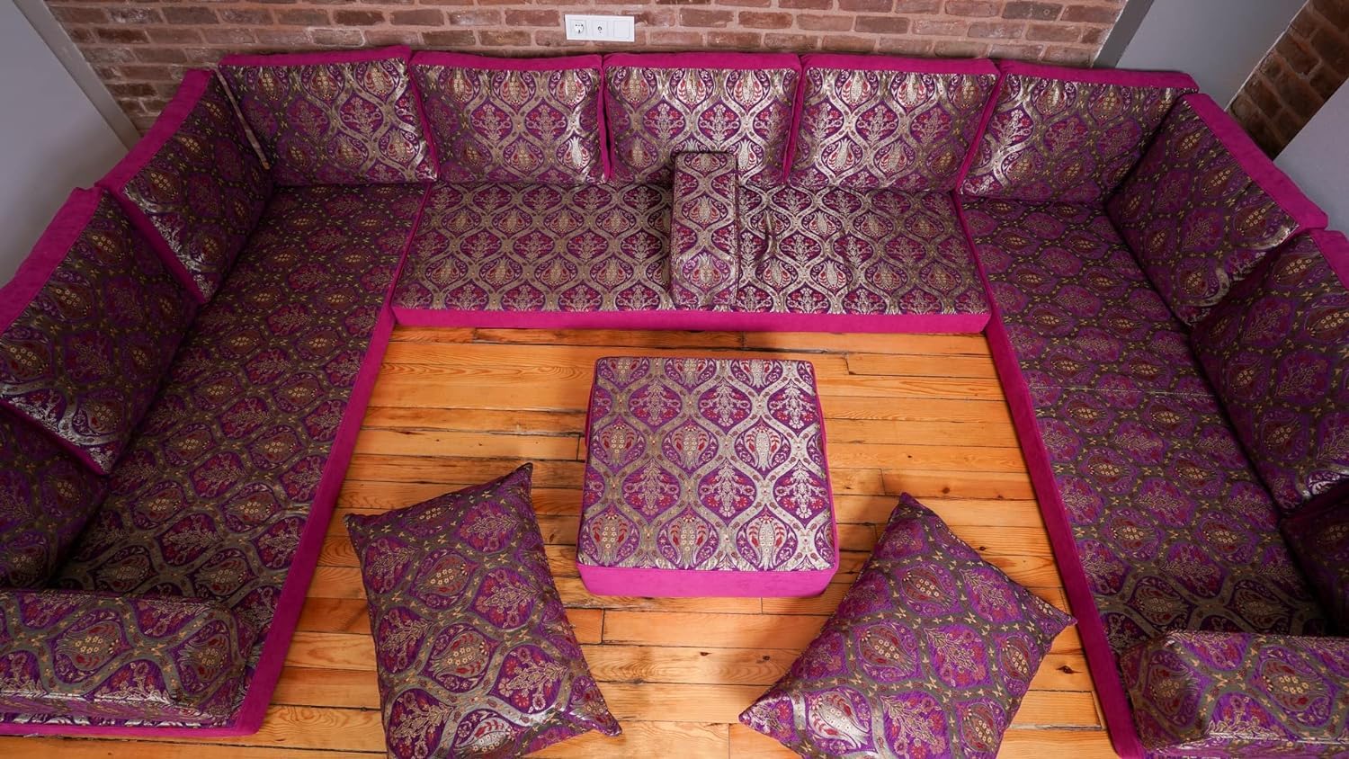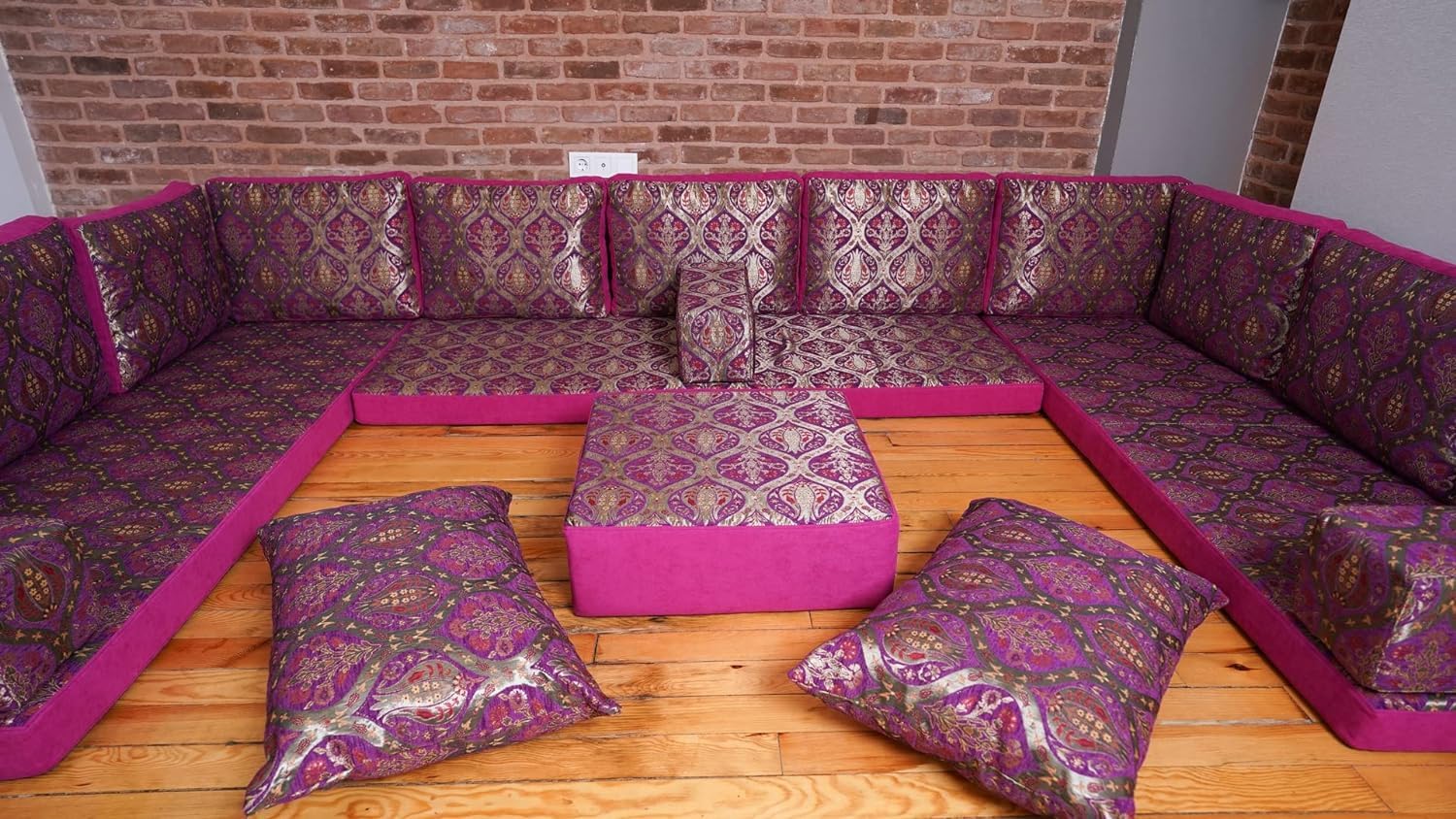 This ‘U Sofa Full Set’ offers a versatile and stylish seating solution with 19 pieces, including cushions, pillows, a rug, and an ottoman. Designed for comfort and durability, its removable, washable covers and customizable options make it ideal for various settings.