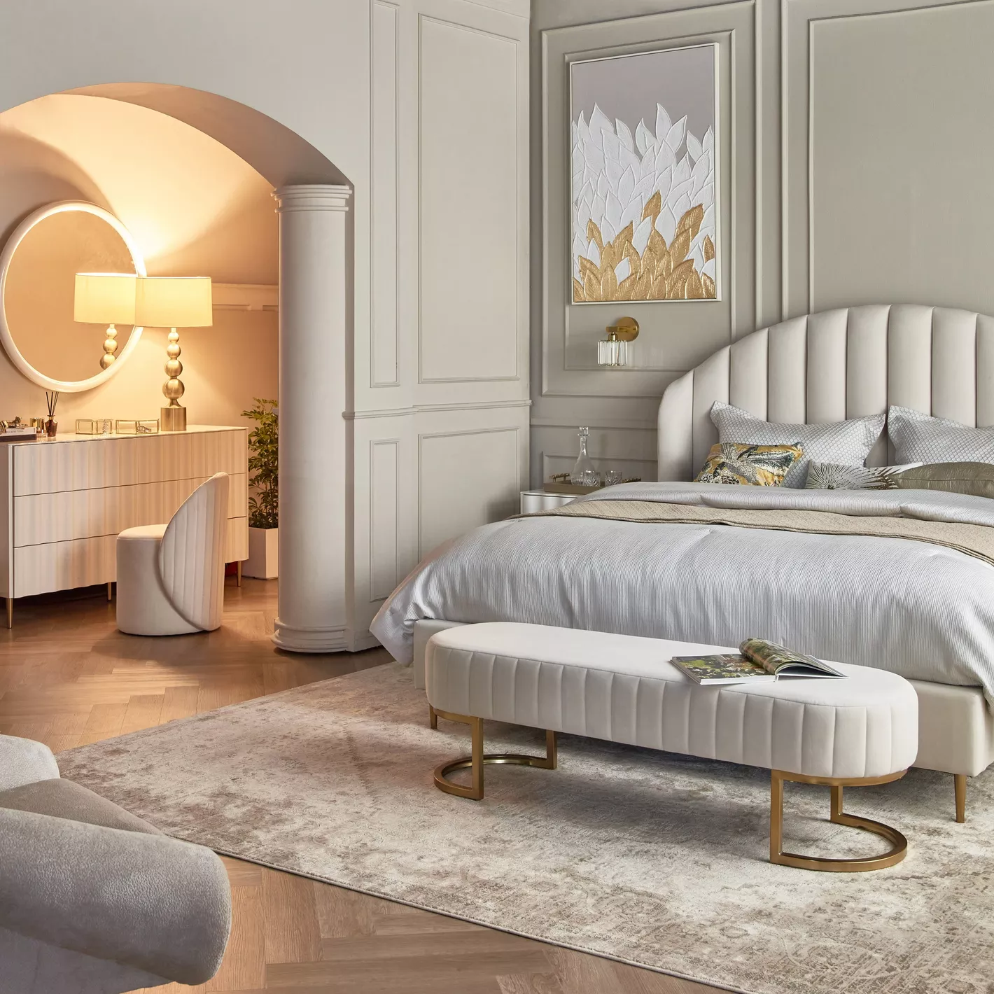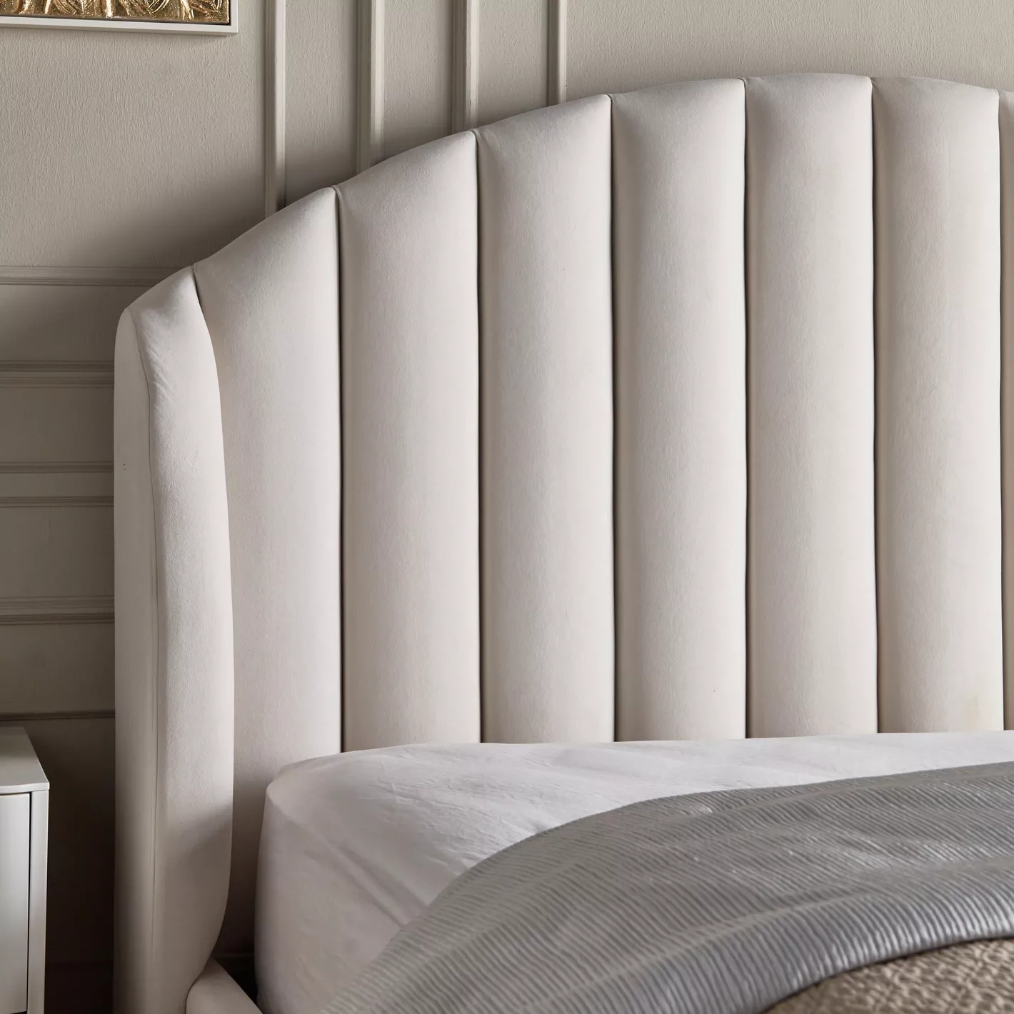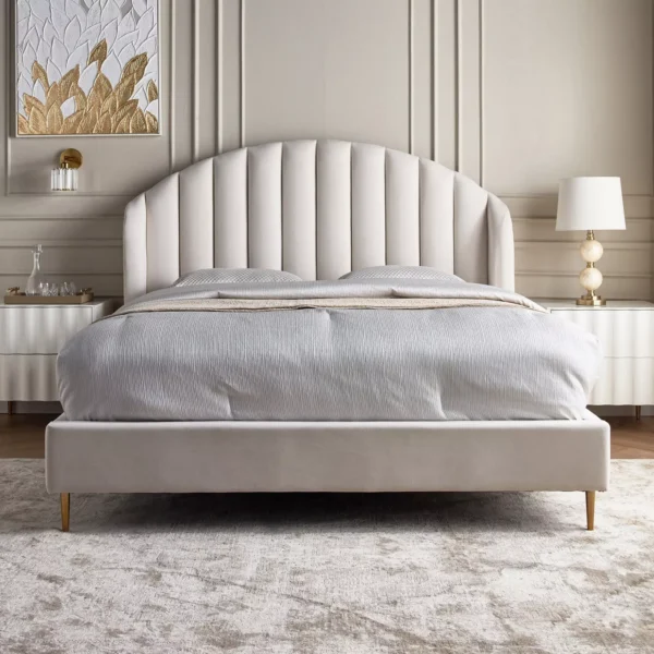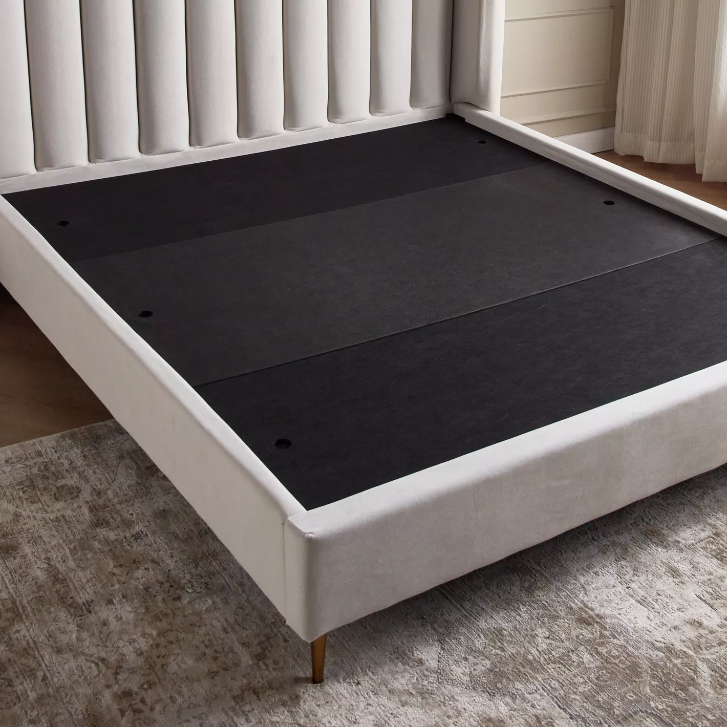Design: Fully upholstered with elegant channel tufting and a majestic winged headboard for a contemporary luxury feel.